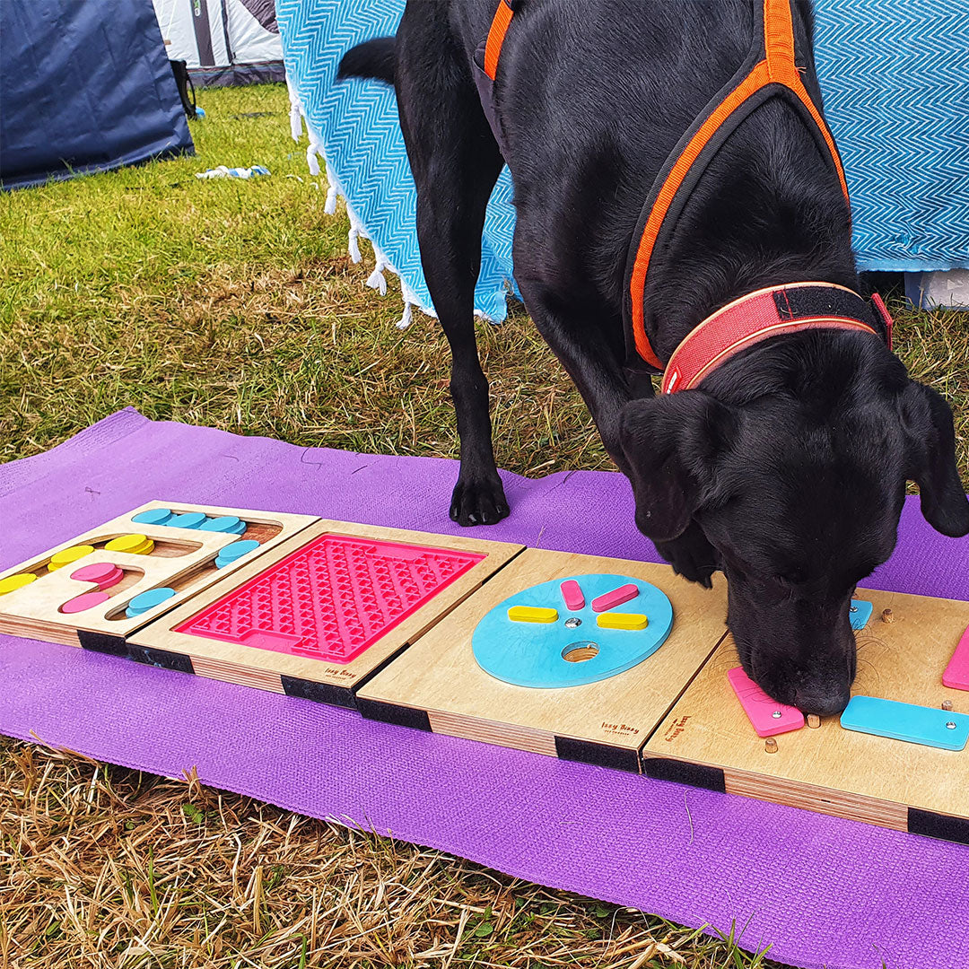 Licking helps reduce anxiety in dogs, the licking mat is a pawfect addition to our pet puzzle collection to increase the length of time the dog is engaging with the game. 20 minutes of mental stimulation is just as tiring as a walk.